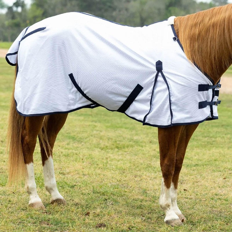 - BREATHABLE AND HEAT-REFLECTIVE - Crafted from breathable mesh fabric, the Reinsman Fly Sheet is designed to keep your horse cool even on the hottest days. The use of white fabric reflects heat rather than absorbing it. This thoughtful design helps regulate your horse’s body temperature, preventing overheating