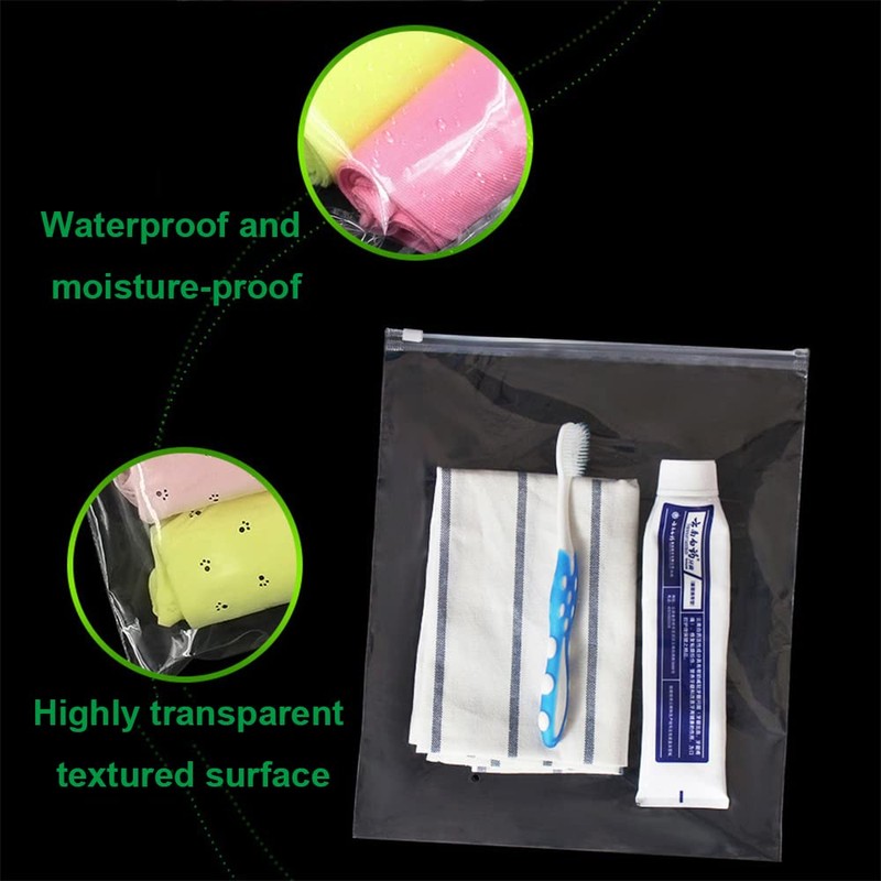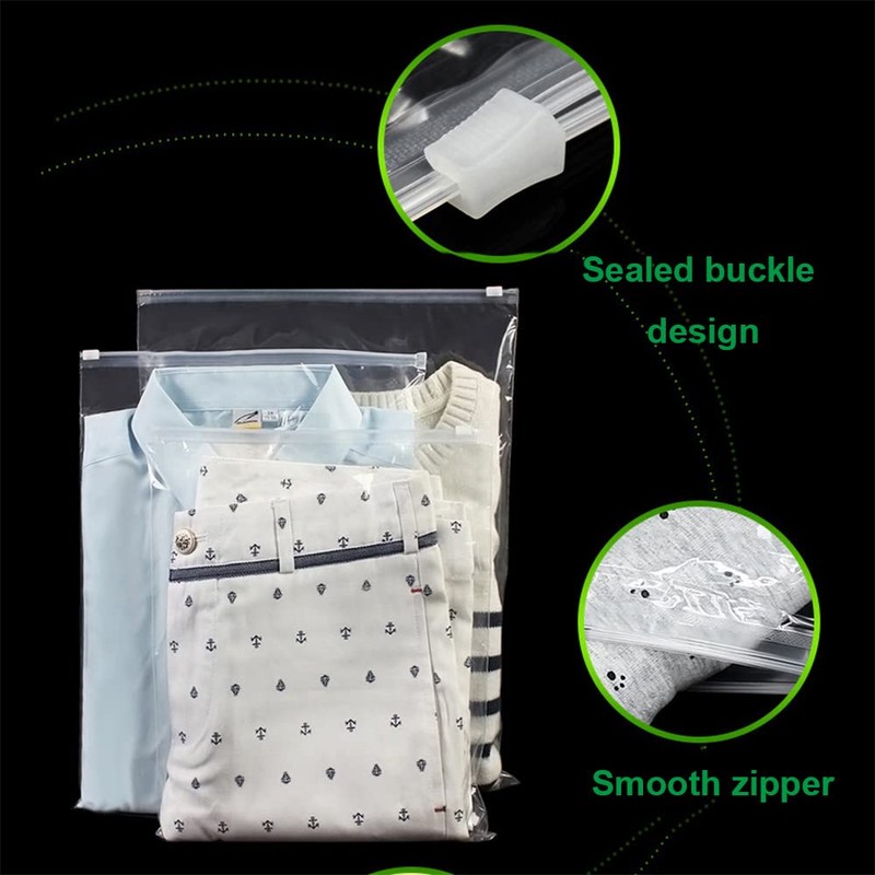 • Tragbares Design: Die Reißverschlussbeutel für Kleidung sind wasserdicht und luftdicht, um Feuchtigkeit zu verhindern und somit Kleidung und Produkte besser zu schützen. Und wir haben acht Größen von Taschen zur Auswahl, Sie können die richtige Größe für Sie wählen.