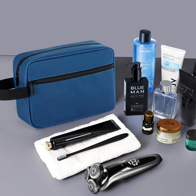 Reise Kulturbeutel für Herren und Damen,Kulturbeutel Herren,Kulturtasche Damen,Kosmetiktasche Waschtasche mit Doppelter Reißverschlussöffnung,Aufbewahrungstaschen mit Griff Kosmetiktasche (Blau)