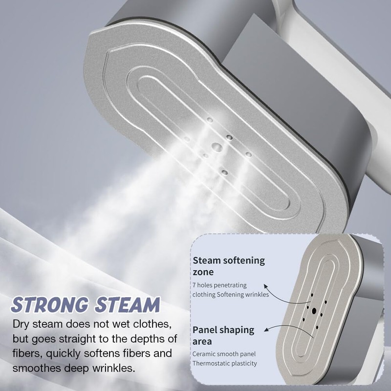 - Der große 120-ml-Wassertank kann mehrere Kleidungsstücke gleichzeitig bügeln, um ein langes Bügeln zu ermöglichen.