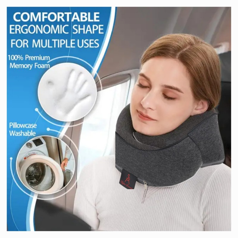 Reisekissen für Flugzeug, Nackenkissen aus Memory-Schaum für Erwachsene, verstellbares und kompaktes Flugzeugkissen, ergonomisches Nackenkissen – Dunkelgrau