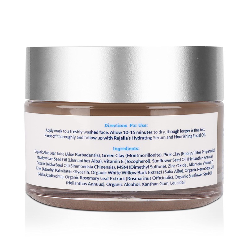 Rejalla Tightening Face Mask Skin Care- Vit C, E, MSM, Pink and green clay, organic aloe juice, and Jojoba oil brightens, nourishes, firms and evens skin tone giving a natural glow. Made in USA