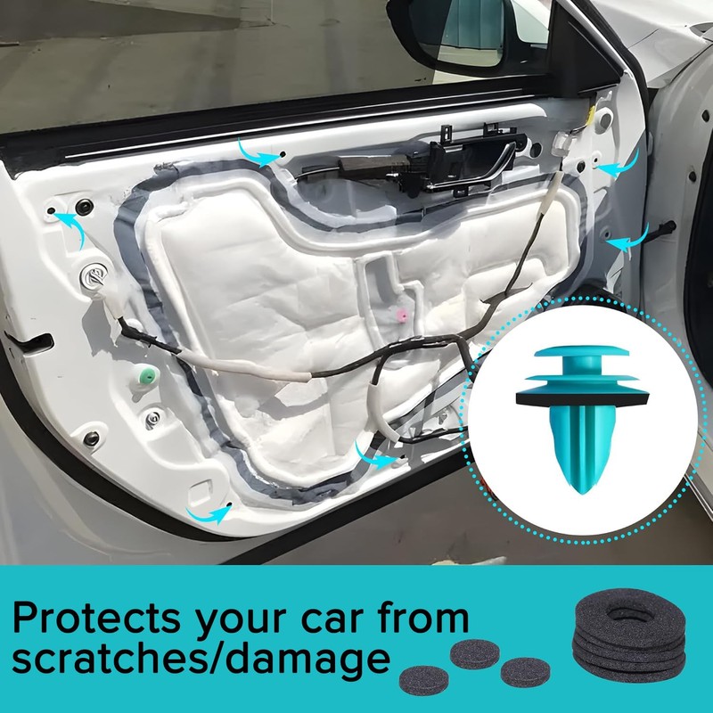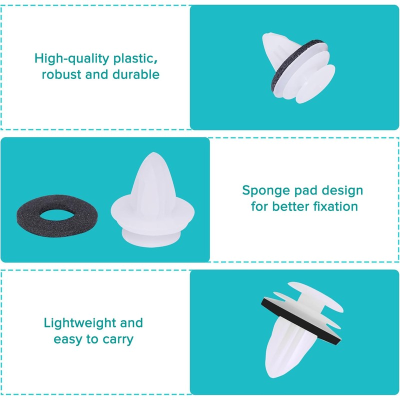 • 【Sponge Pad Design】Plastic clips with sponge cushion use, can increase the car's anti-bump damage and anti-vibration performance, can effectively reduce the car driving or collision body parts vibration amplitude.
