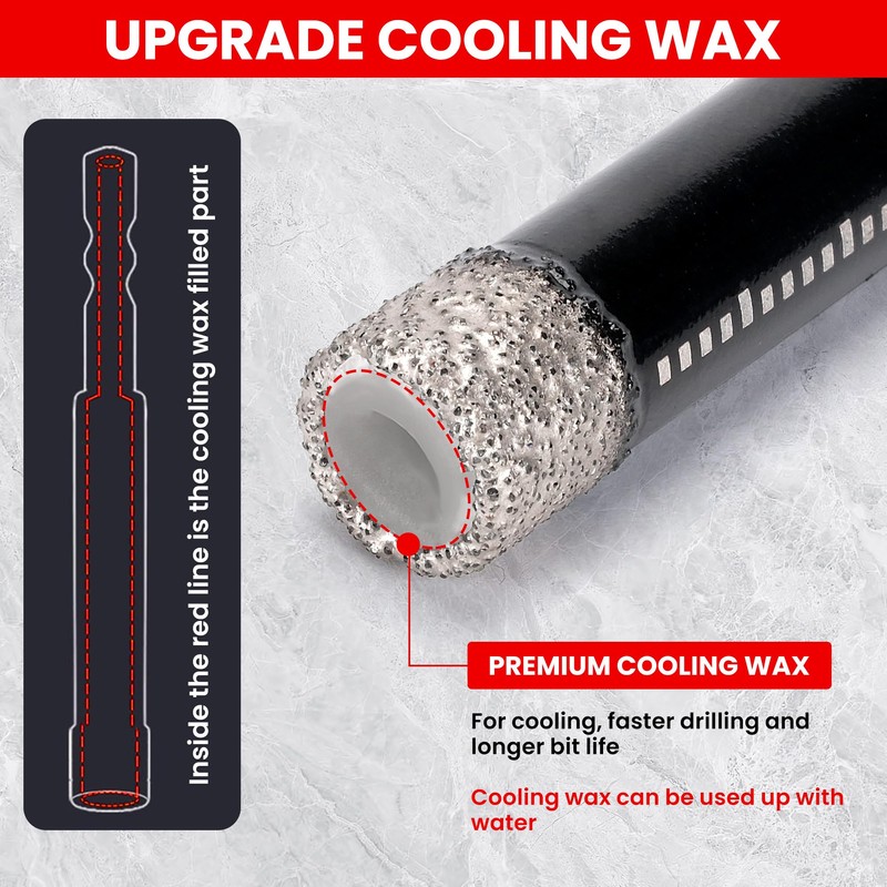 - Dry & Wet Drilling Flexibility: Built-in cooling lubricant allows dry drilling, while water can be added for extended bit life. Great for effortless cutting through ceramic, porcelain, masonry, glass, marble, granite, and more