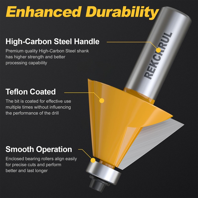 - Durable & Risk-Free: Includes 6x chamfer router bit ( cutting depth:1"/1"/1"/1"/3/4"/9/16"). Backed by a 24-hour customer support guarantee