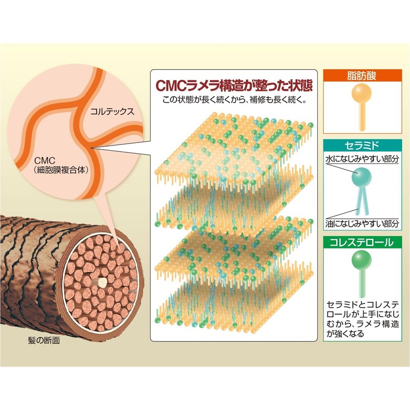 This is also called lamela structure, and CMC components such as ceramide, cholesterol, 18-MEA are formed regularly in line with the correct way.
