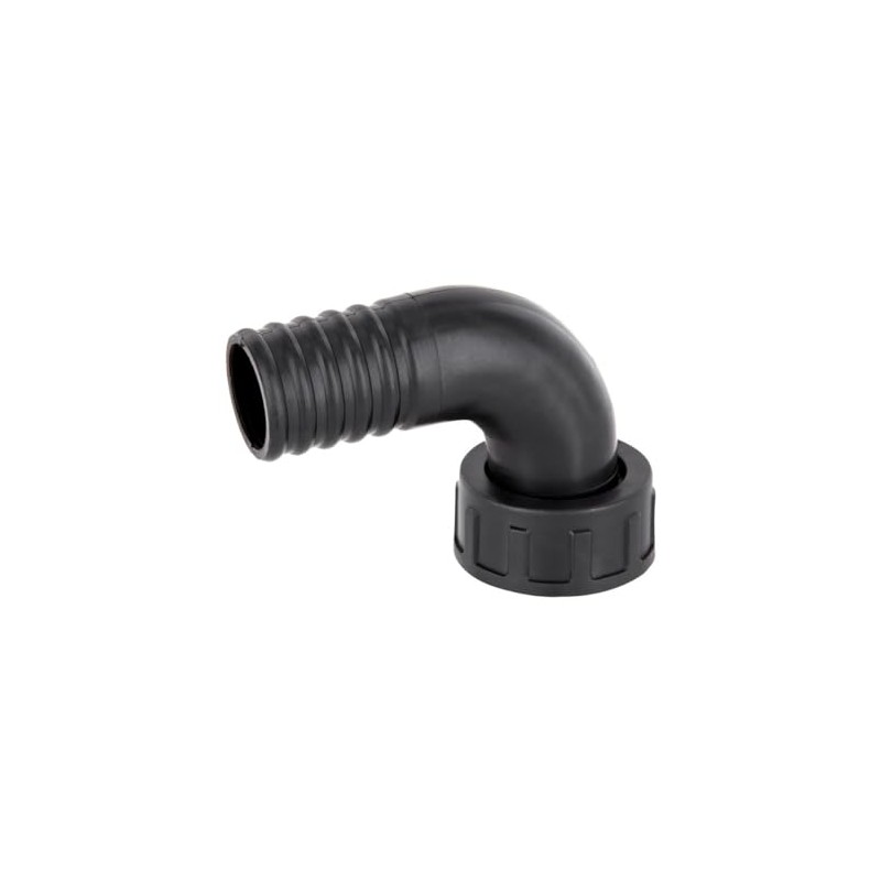 The screw connection of the PP hose nozzle 90° with movable union nut can be rotated so that the hose nozzle does not twist.