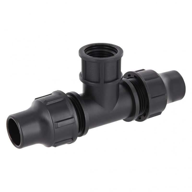 - The T-piece with 2-way lock system connection is suitable for PE pipes in the selected diameter. The internal thread is suitable for threaded fittings of the same inch size. The fitting can be loaded up to a pressure level of maximum 4 bar. The lock fittings are very easy to install - the pipe is inserted and the screw connection is twisted. Thus, the Lock-Quick System is completely waterproof and mechanically fully connected. The fittings can be used in many
