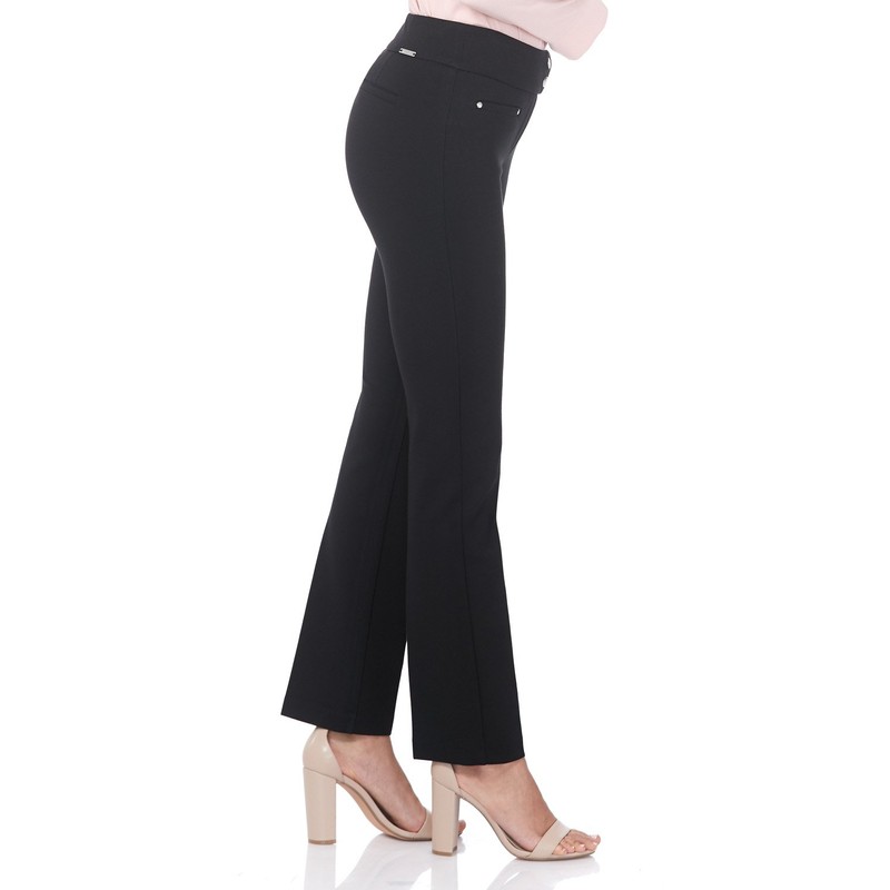 Rekucci -Women- Secret Figure Pull-On Knit Straight -Pant- w/Tummy Control (14 Short, Black)