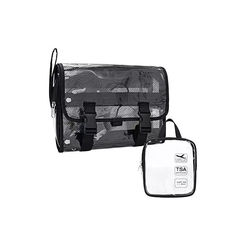 Neceser colgante, neceser de viaje 3-1-1 aprobado por la TSA, bolsa de maquillaje transparente, organizador de cosméticos para hombres y mujeres, bolsa pequeña para líquidos transparentes de un cuarto de galón para seguridad aeroportuaria y transporte BOLSA DE