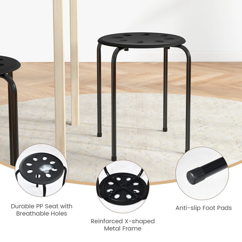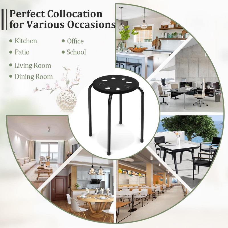 - 【Practical Seating Solution】Whether you need extra seating for guests in your home, efficient furniture in your classroom, or flexible options in your workspace, these stackable metal stools adapt to your needs.