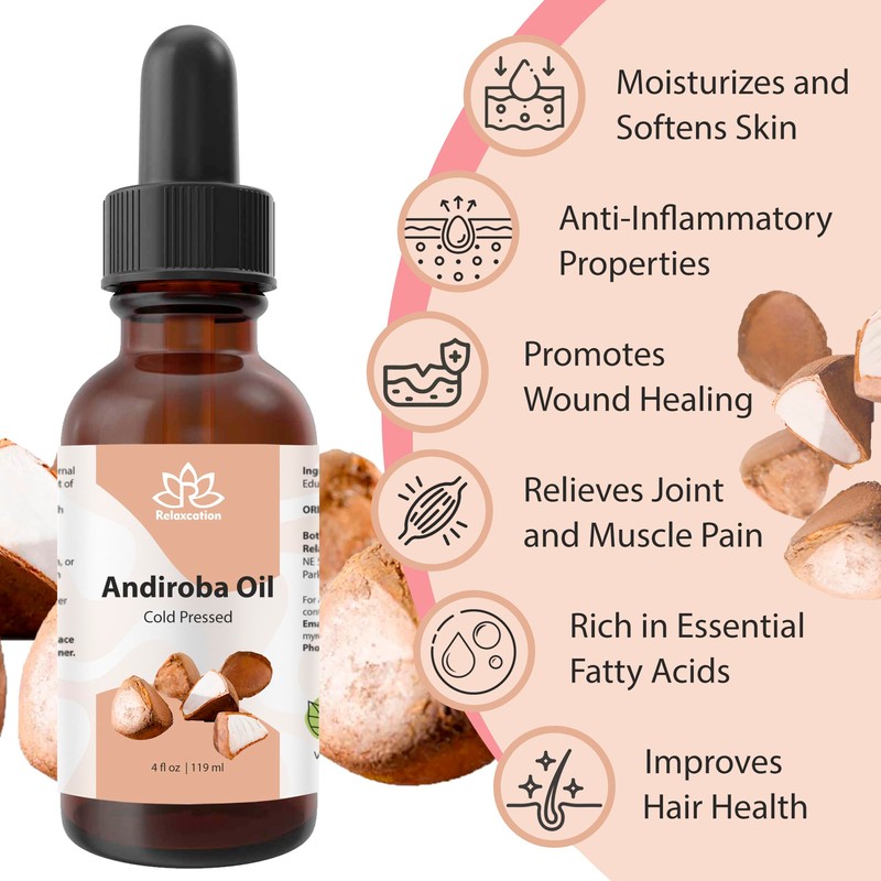 Relaxcation Pure Andiroba Oil | Cold Pressed Botanical Oil for Face, Hair & Body | Lightweight Natural Extract for Soft Skin & Shine | Vegan, Hexane-Free, Unrefined (4 oz)