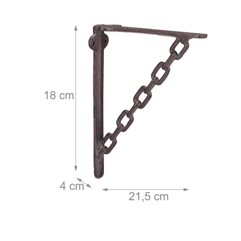 Relaxdays 10022947 Cast Iron Shelf Brackets, Set of 2, Antique Style, Unusual Chain Motif, Wall Bracket for Shelf, Rust Brown, 18 x 4 x 21.5 cm