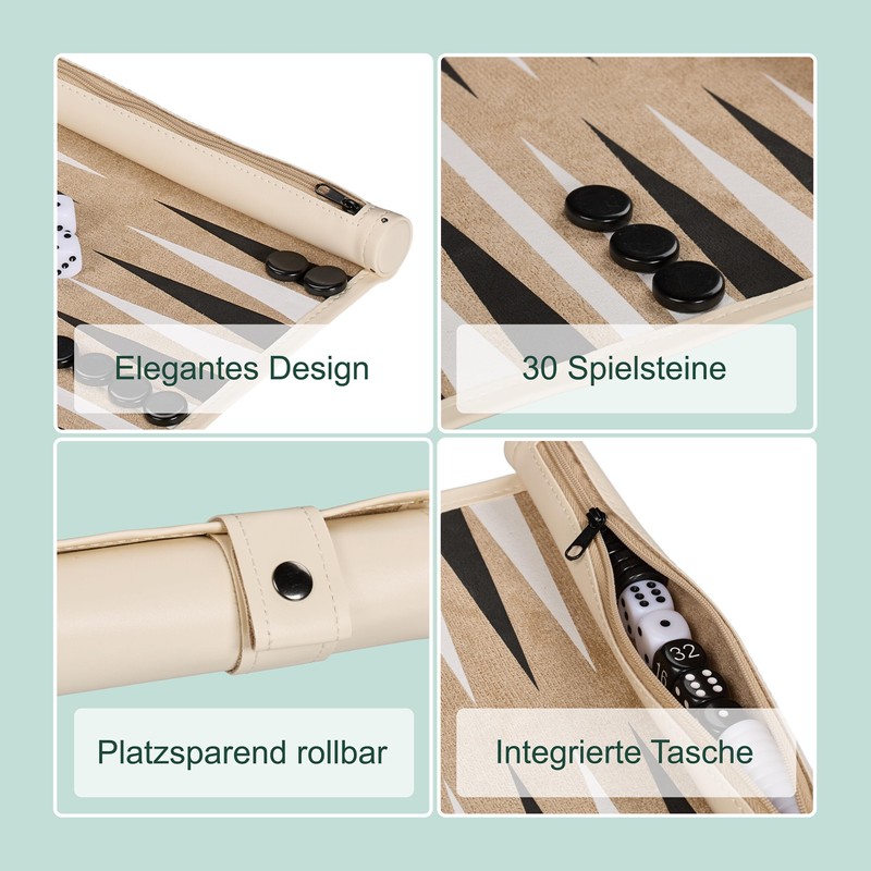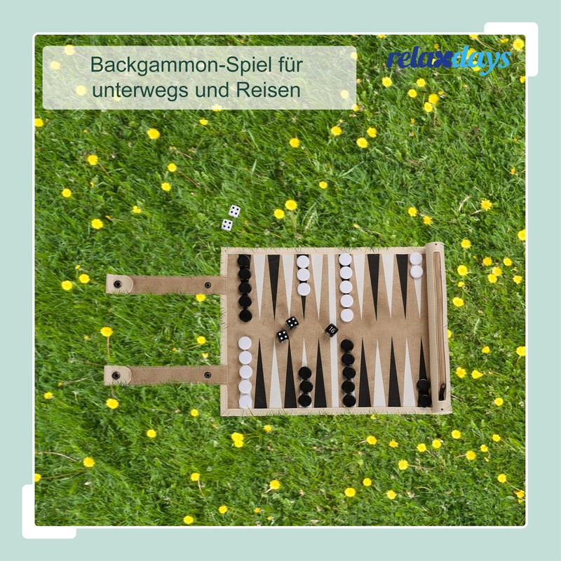 Relaxdays Backgammon Roll Up Travel Game with Accessories 32 x 26 cm Leather Look Board Game Beige