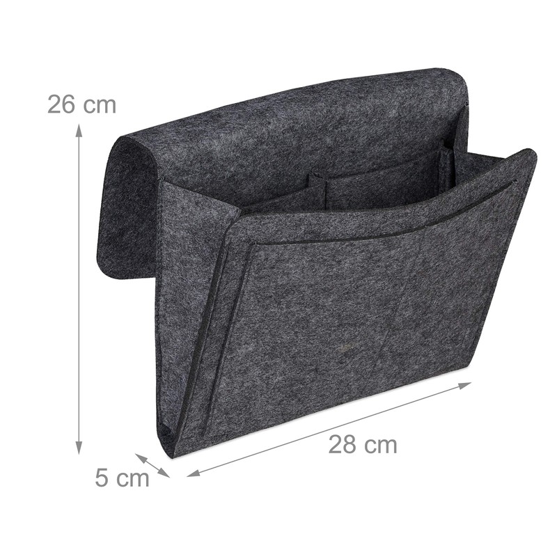 Relaxdays Hanging Bag, 5 Compartments, Storage, Sofa, Felt Bed Organiser, HBT 26 x 28 x 5 cm, Dark Grey, 100%, Darkgray, 26 x 28 x 5cm