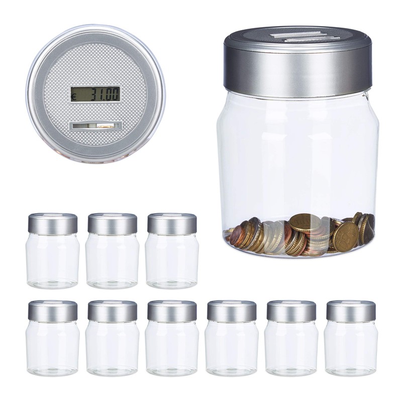 Relaxdays Money Box with Counter, Counting Piggy Bank with Display, Digital C...