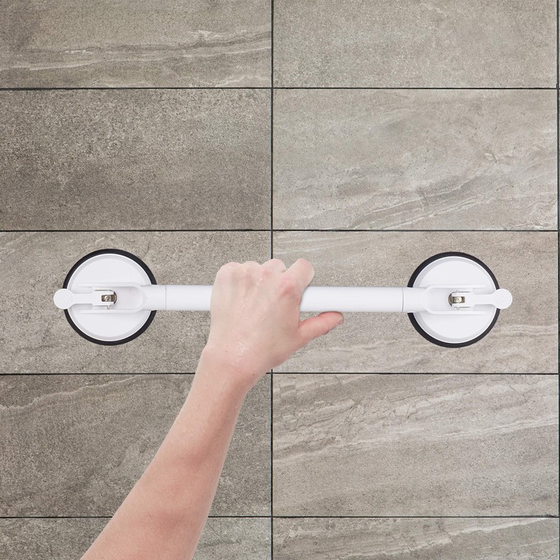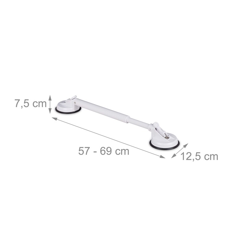 Relaxdays Extendable Suction Handle, 57-69 cm, Shower & Bathtub, 70 kg, for Seniors, Wall, Suction Lifter, White, L