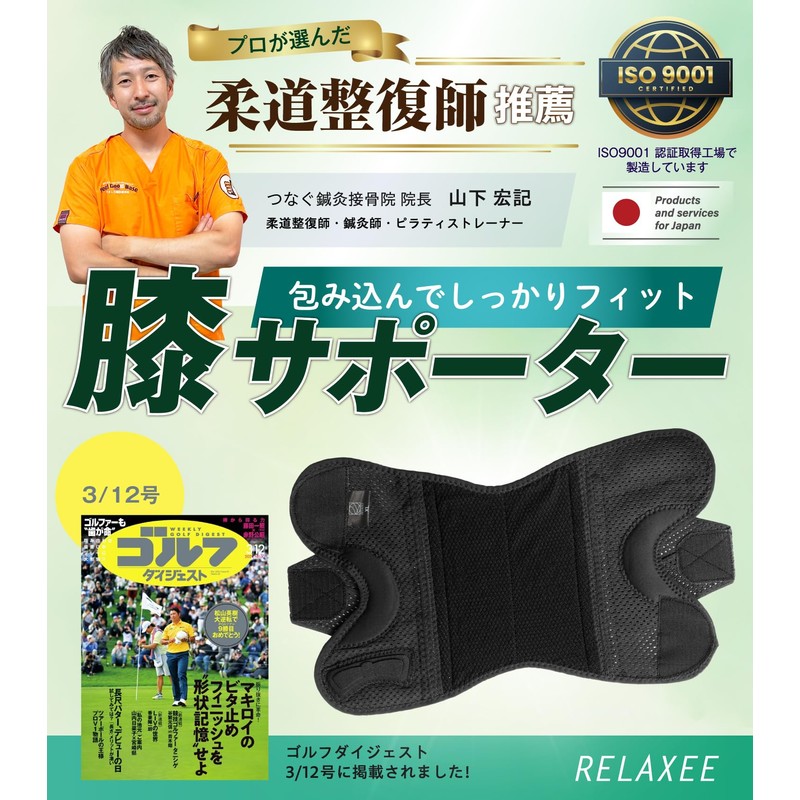 - ✅【徹底した品質管理】RELAXEE膝サポーターはISO9001認証取得工場で製造されております。お客様に安心して商品をご使用頂く為、徹底した品質管理の下で製造・検品させて頂いております。