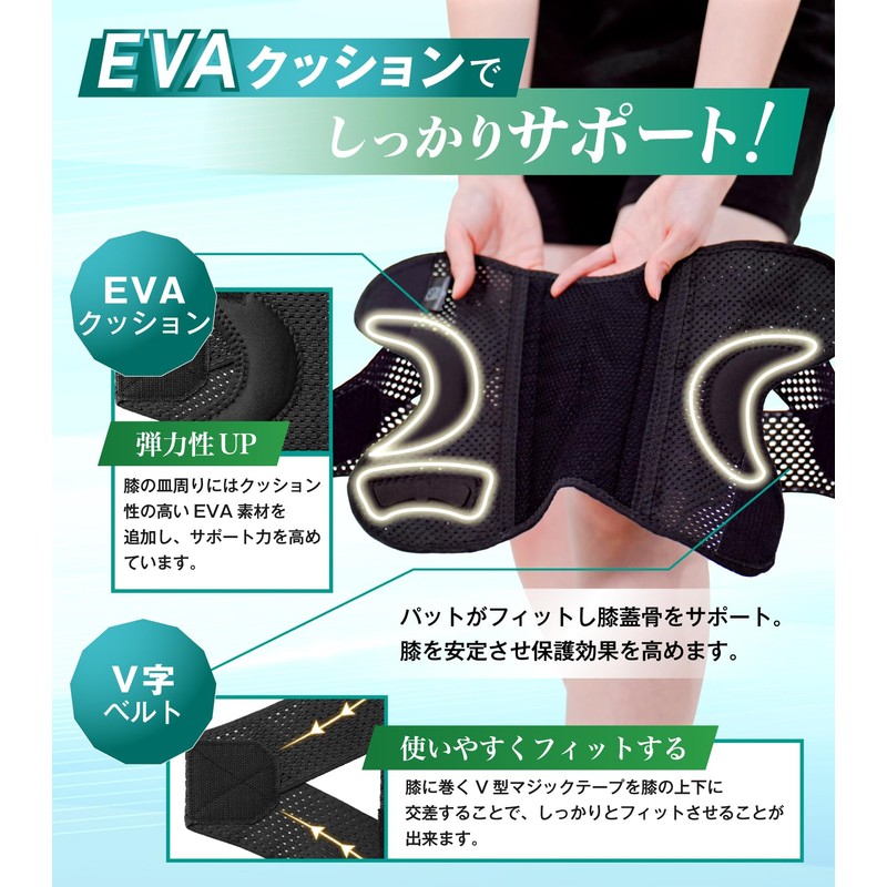 - ✅【EVAパッドでやさしくサポート】膝の皿の両側に配置された月形パッドが、膝関節へのサポートを提供し、使用時の快適性を目指します。