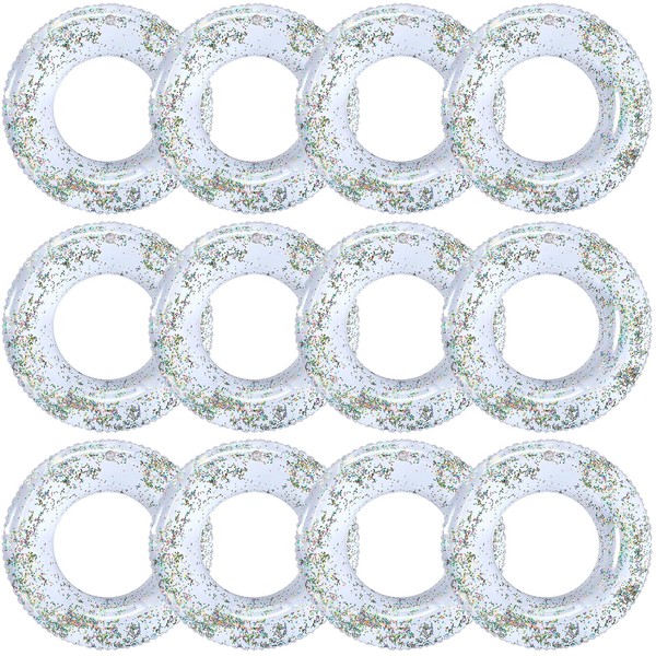 Relaxgiant 12 Pcs Summer Swim Rings with Glitter Fun Inflatable Pool Float Round Shaped Swimming Pool Tubes for Beach Party Supplies(White,23.6 l X 23.6 w)