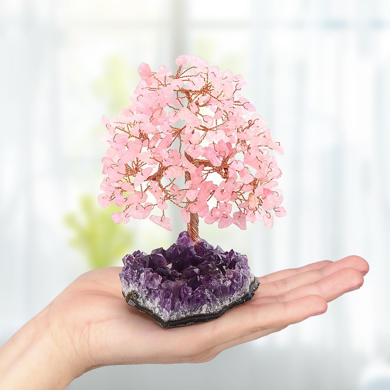 RelaxNest Crystal Tree Amethyst Money Tree | Purple Tree of Life Desk Decor | Zen Office Accessories, Unique Birthday Gift for Women, Positive Energy Crystal Art (Rose Quartz)