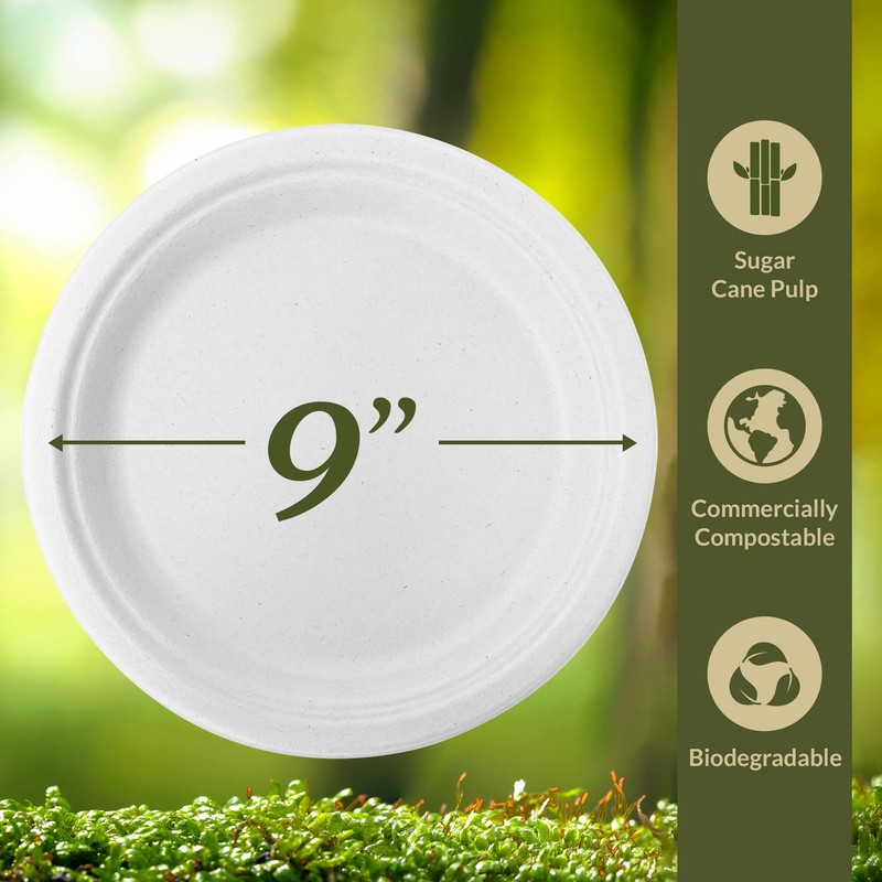 - Compostable Paper Plates | 9 Inch - White | Bagasse/Sugarcane Fiber | 140 Pack Bulk | Microwave Safe