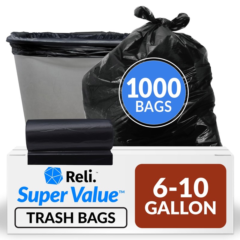 Reli. SuperValue 6-10 Gallon Trash Bags | 1000 Count Bulk | Small | Black Multi-Use Garbage Bags