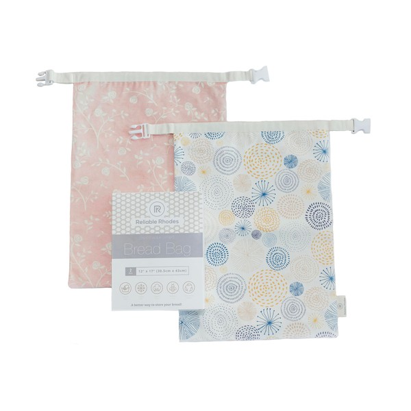 Reliable Rhodes Reusable Beeswax Bread Bag 2 Pack –12x17 Bread Bag for Homemade Sourdough, Beeswax Coated Organic Cotton Storage Bag for Loaf Baguette, Freezer Safe, Eco-Friendly Wrap Spiral Blossoms