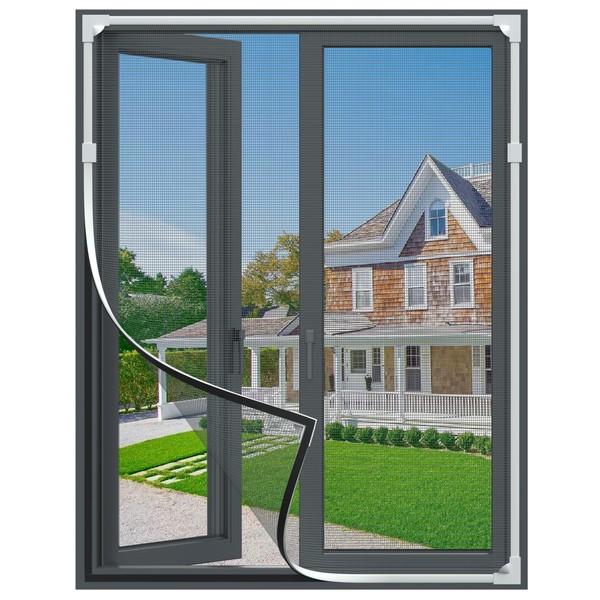 RELIANCER Fiberglass Magnetic Window Screen,DIY Adjustable 32''x24'' Window M...