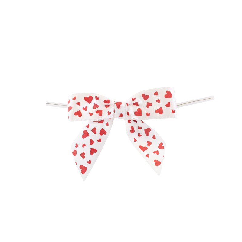 - Hearts 7/8in Satin Twist Tie Bows - 2 Loops X 3-1/4in Span, 2 Tails X 2in X 7/8in Ribbon Width & 5in Twist Tie, White/red ; #N/A