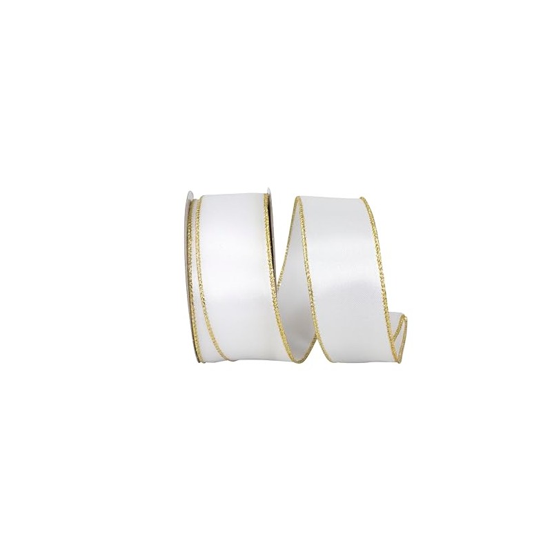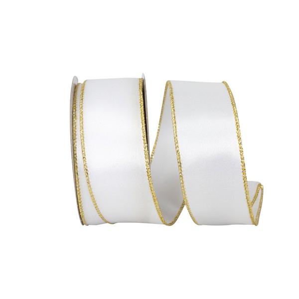 Reliant Ribbon Satin Value Metallic Wired Edge, White/Gold, 1-1/2 Inch, 10 Yards