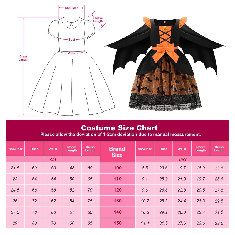ReliBeauty Bat Costume for Children, Girls with Headband Wings, 150