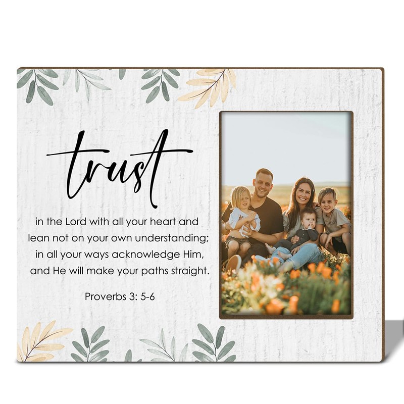 Religious Gifts Trust In The Lord With All Your Heart Wood Frames, 4x6 Photo Frame with Stand for Wall and Tabletop Display Christian Gifts for Christmas Halloween, Wall Frame Hanging Frame -24