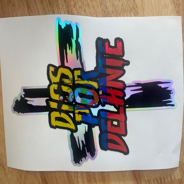 Dios por Delante custom printed decal Printed on holographic vinyl Indoor or outdoor use Waterproof Measures 7x7.5 inches