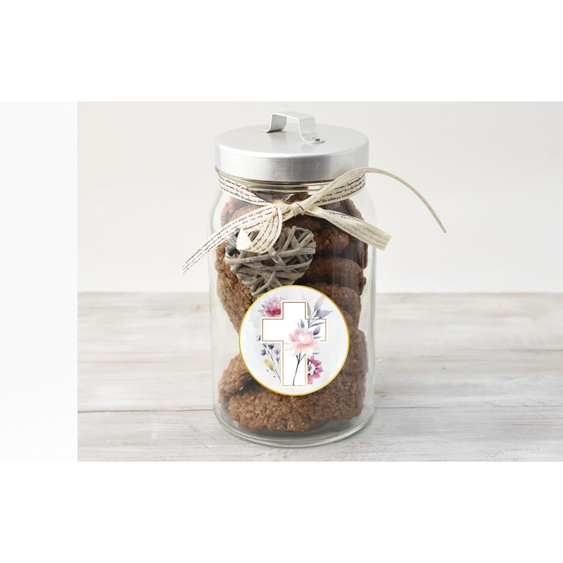 Religious Stickers – 500 PCS Floral Cross Stickers, Christian Cross Design Round Labels, Envelope Seals, Party Favors, 1.5 Inches in Diameter