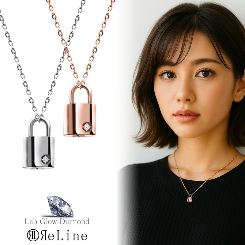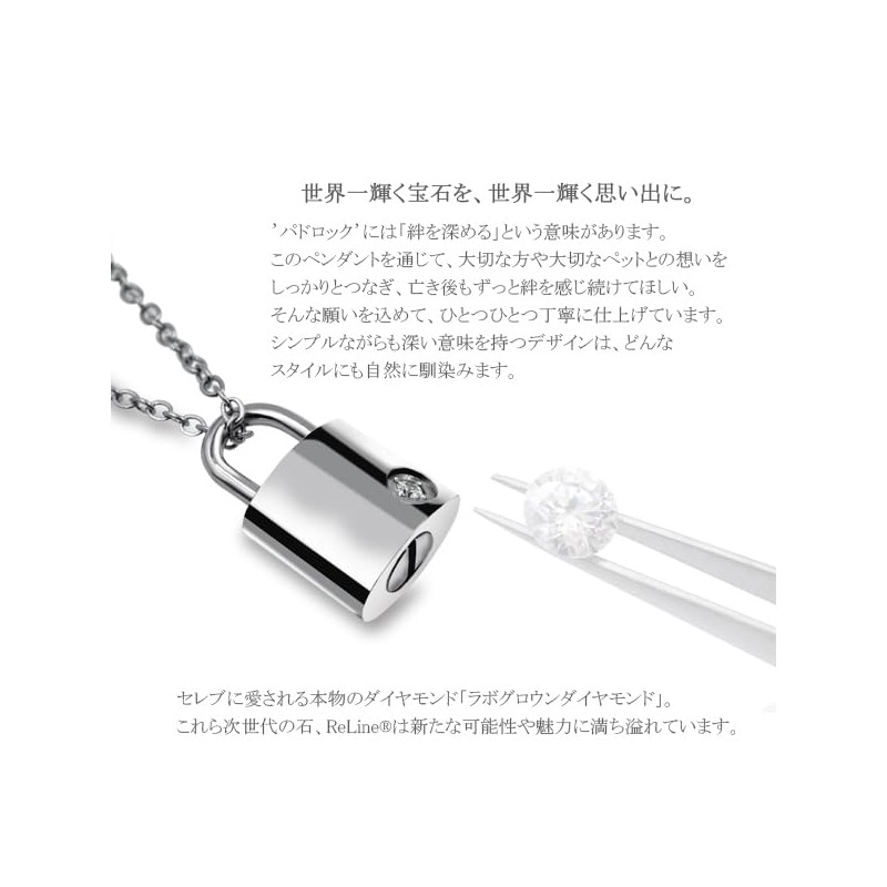 ReLine Genuine Cremation Accessory, Diamond Padlock Pendant, Includes Bone Set, Hypoallergenic Metal, Safe, Made in Japan, Urn Capsule, Ashes, Necklace, Urn Accessory, Stainless Steel, Memorial