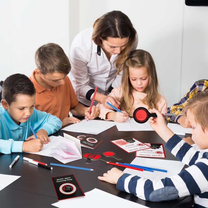 - Spy Theme: use this set to play the role of detective; Using special red lenses for decoding secret messages on the cards, there are also blank agent training camp notepads that kids can write in with blue colored pencils; Cover your own secret information with red colored pencil graffiti, so that only a detective with a spy decoder can decipher your information; Allowing have more and freer ways to play