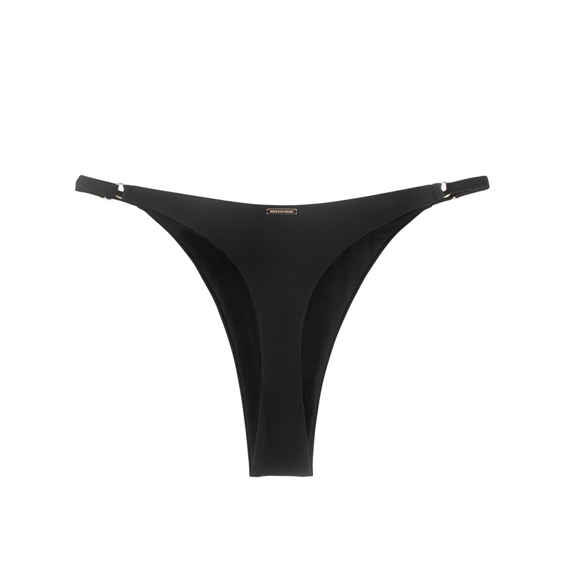 RELLECIGA Women's Black High Cut Thong Bikini Bottom Size Large