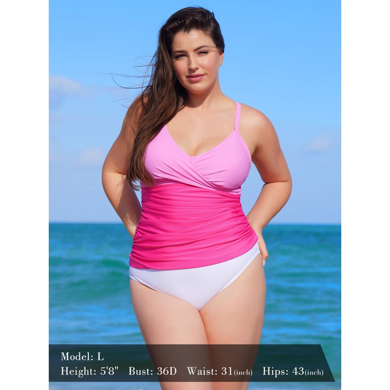RELLECIGA Women's Fuchsia+Hot Pink V Neckline Ruched Tankini Top Swimsuits Size Small