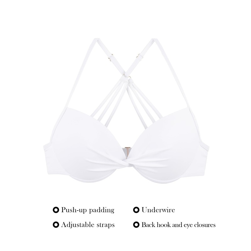 RELLECIGA Women's White Push Up Bikini Top Twist Front Underwire Bathing Suit Size Large