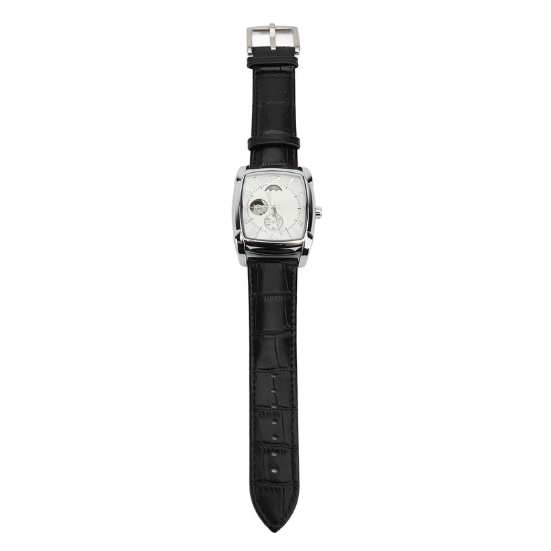 Reloj de Pulsera Mecánico Automático Esqueleto, Cronógrafo de Fase Lunar, Analógico, Correa de Cuero de PU para Hombres de Lujo (Plata Blanco)