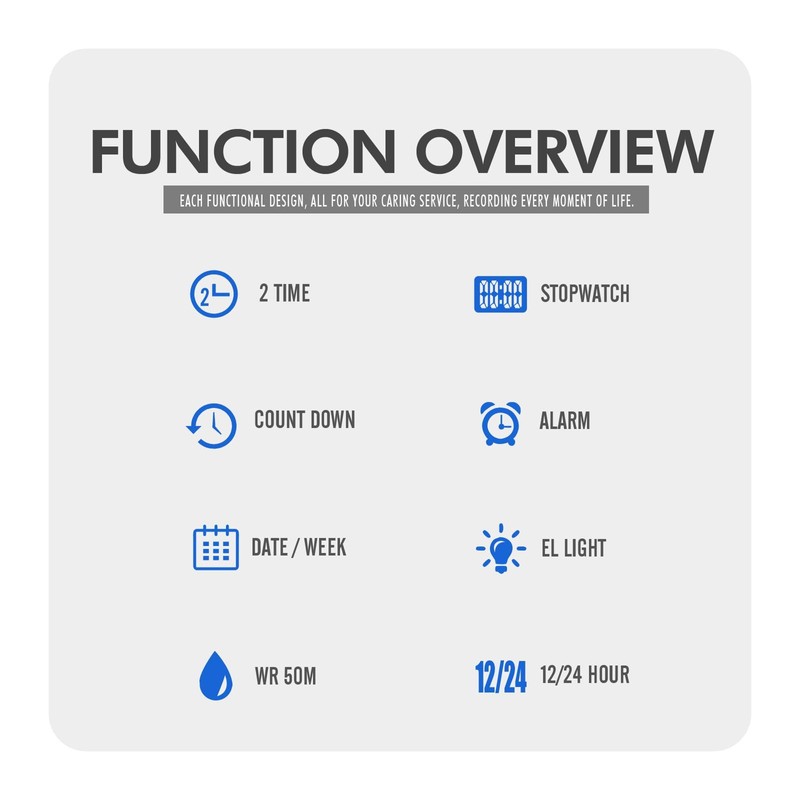 - Material: banda de silicona de alta calidad con cierre de hebilla, ventana de esfera de resina, carcasa de ABS con 35 mm de diámetro, resistente a los arañazos y a los golpes, asegurando durabilidad y movimiento de cuarzo japonés con visualización digital para una hora precisa.