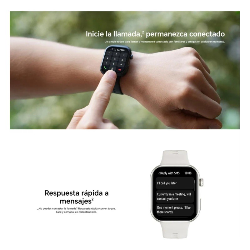 El reloj cuenta con la función de medición con un solo toque, que permite medir la frecuencia cardíaca, el oxígeno en sangre y el estrés simultáneamente, e incluye un recordatorio de sedentarismo.