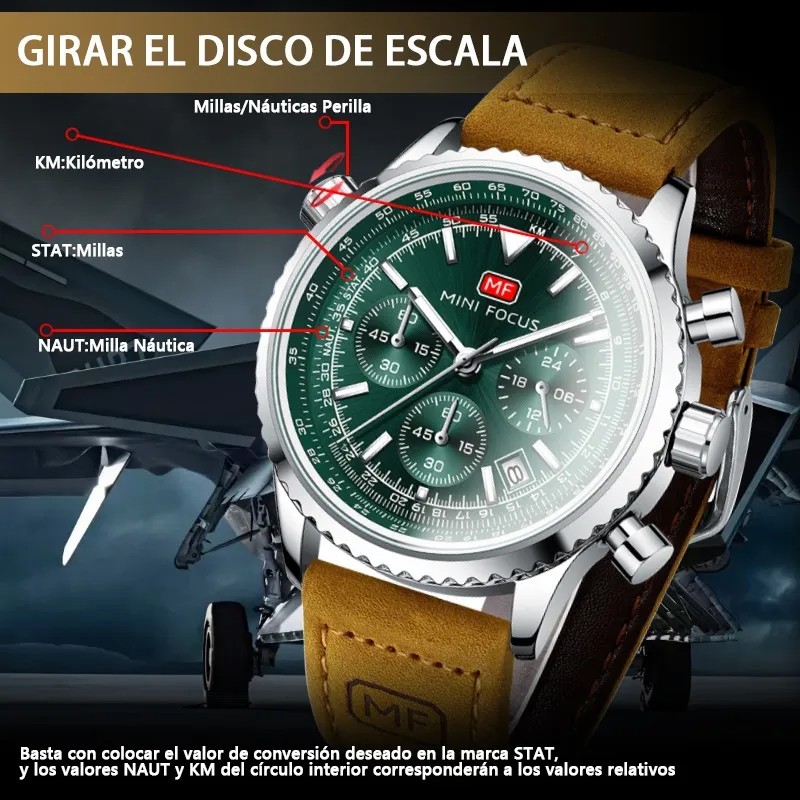 *Múltiples identidades, sincronización única: Corona giratoria de múltiples escalas para millas, conversión de millas náuticas y kilómetros, el movimiento de cuarzo de alta calidad proporciona una sincronización precisa.