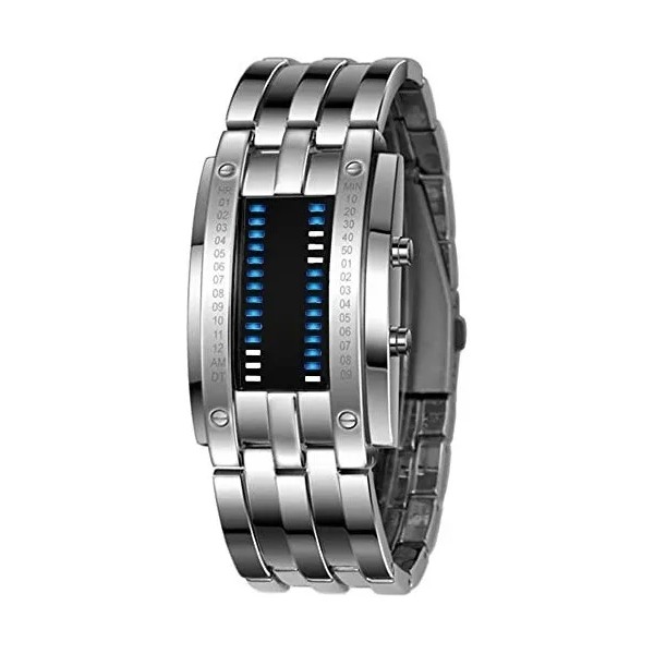 El Reloj LED Binario para Hombre combina tecnología y diseño en un accesorio único. Su pantalla LED de alta visibilidad muestra la hora y la fecha de manera digital, utilizando un sistema binario que añade un toque futurista. La correa de acero inoxidable en color plateado ofrece durabilidad y comodidad, asegurando un ajuste perfecto en tu muñeca.mercadolibre.com.mx+2mercadolibre.com.mx+2articulo.mercadolibre.com.mx+2