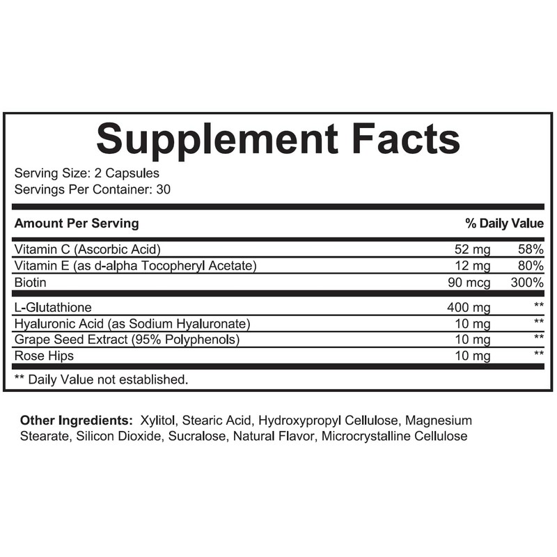 - Combines 2 forms of the antioxidant Vitamin C, Ascorbic Acid and Rose Hips, to fight the cell-damaging free radicals and maximize the effect of Glutathione