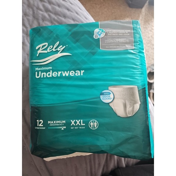 12 Count Each RELY Unisex Maximum Underwear XXL 68”-80” waist.