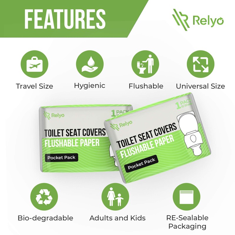- ?? NO MORE STRESS when you need to use a public restroom. Our 50 PACK of Flushable Toilet Seat Covers will come in handy when needing to use a public restroom. Our seat covers are essential for safety and peace of mind.