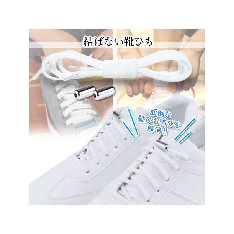 Eliminates unusual laces when wearing shoes. Since the string is stretchy, it is convenient to put on and take off as is. Recommended for children who have difficulty ties in strings. No more stepping on the shoelaces, so you will be free from annoyance. It has a moderate tightness that fits your feet well. Product Specifications: Color: White.