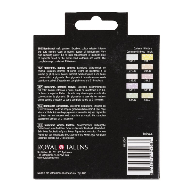 - Luxury soft pastel set with a selection of 10 half pastels in various light tones, perfect for highlights: 100.5 – 201.8 – 372.1 – 234.1 – 339.1 – 331.9 – 536.9 – 505.10 – 627.1 – 633.9
